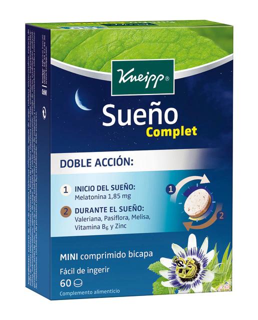El comprimido sueño complet Kneipp es un nuevo 'mini' comprimido bicapa que ayuda a conciliar el sueño más rápidamente y favorece un sueño relajado y de calidad. Su tamaño 'mini' lo hace más fácil de ingerir por el consumidor, y su tecnología de doble acción actúa en dos fases: