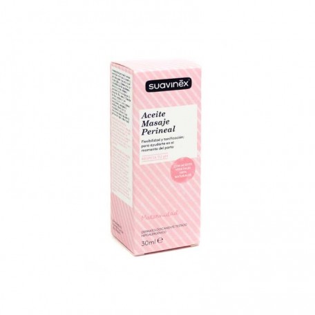 El Suavinex Aceite Masaje Perineal aumenta la flexibilidad y elasticidad de la piel, preparándola para el momento del parto, gracias a la combinación de aceites vegetales 100% naturales. Respeta el pH de la zona íntima y reduce la posibilidad de traumatismos perineales durante el parto. También está indicado durante el postparto para ayudar a cicatrizar y regenerar los tejidos, gracias a sus ingredientes activos, que incluyen aceite de rosa mosqueta, aceite de germen de trigo y vitamina E.
