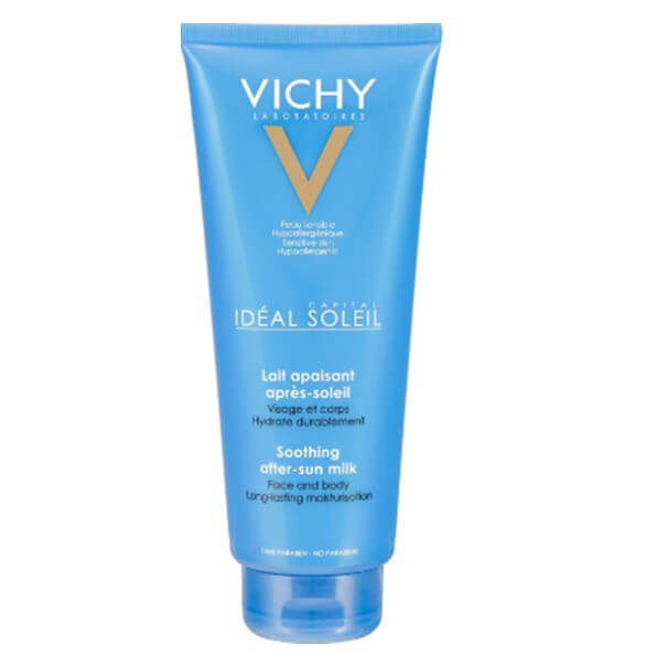 La Leche After Sun Vichy Idéal Soleil calma y nutre la piel después de la exposición solar. Su fórmula, libre de parabenes, ha sido testada dermatológicamente en pieles sensibles. Además, está enriquecida con Agua Termal de Vichy, que aporta propiedades calmantes, fortalecedoras y regeneradoras.
