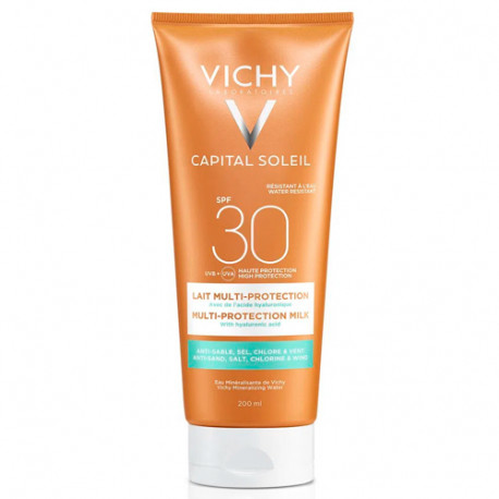 La leche protectora hidratante es uno de los protectores solares con más alta protección para pieles sensibles de Vichy. Es efectiva para luchar contra los efectos nocivos de los rayos UV y protege el capital de la piel. Previene los daños causados por la radiación solar ayudando así a proporcionar un bronceado luminoso y homogéneo. De esta misma forma, protege a la piel del fotoenvejecimiento gracias a los filtros químicos que contiene su formulación. Es perfecto para hombres y mujeres que buscan una protección solar alta para evitar quemaduras solares y otros efectos causados por la radiación solar.Vichy ofrece su Leche Protectora con tres niveles distintos de fotoprotección: SPF 20, SPF 30 y SPF50+.